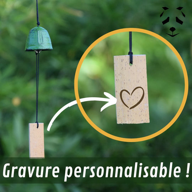 Le carillon japonais, aussi appelé "fūrin" produit un son résonnant et léger très caractéristique, qui est facile à reconnaître de loin lorsque l'on connaît bien les carillons. Au Japon, entendre les fūrin est synonyme d'été. En plus de la mélodie très douce et agréable qu'il produit, le carillon japonais est beaucoup apprécié pour son aspect décoratif. La petite coche en fonte est très jolie et apporte une atmosphère très authentique. D'ailleurs, le nom "fūrin" est composé des idéogrammes "vent" et "cloche".